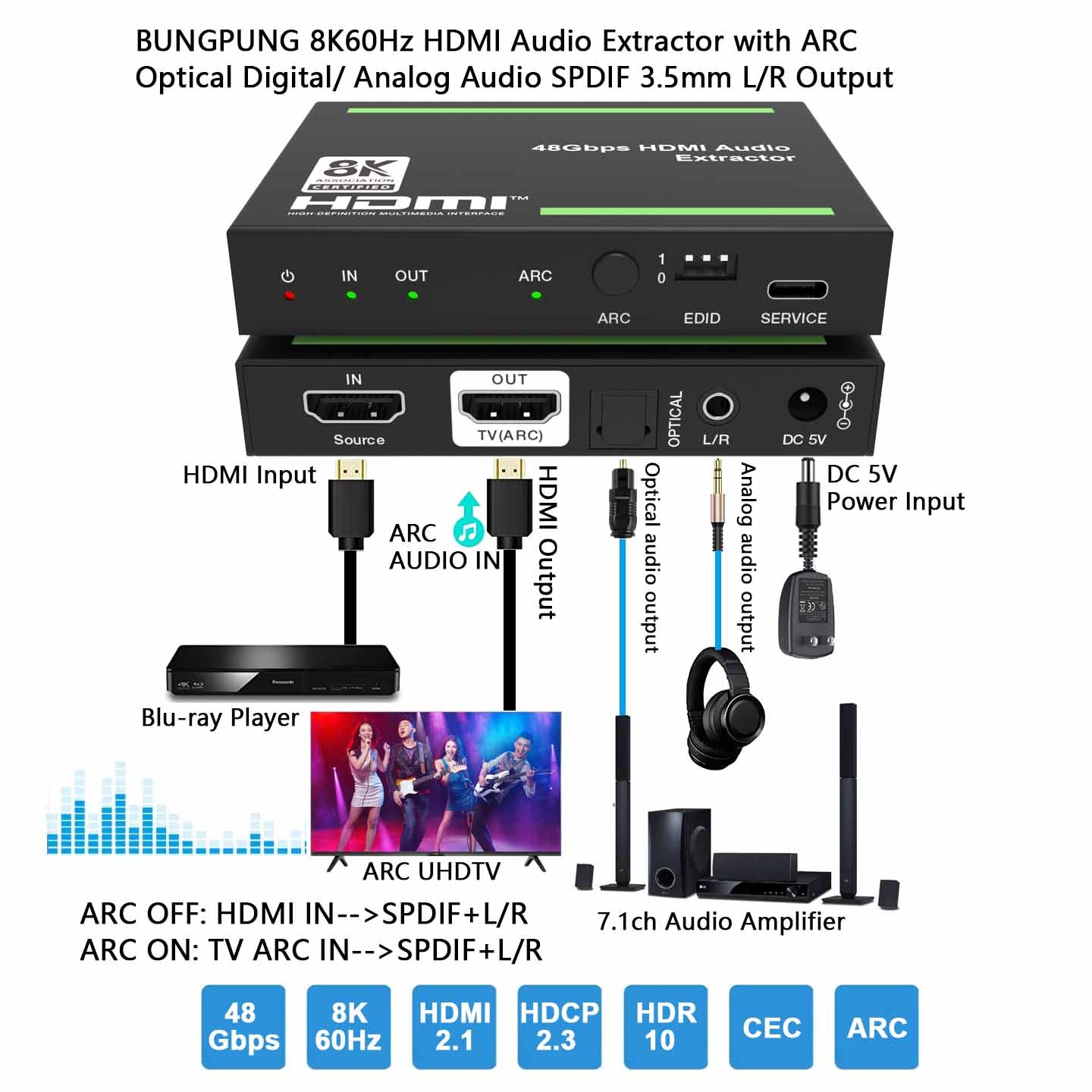 8K HDMI Audio Extractor Digital Analog Audio Output ARC-BUNGPUNG